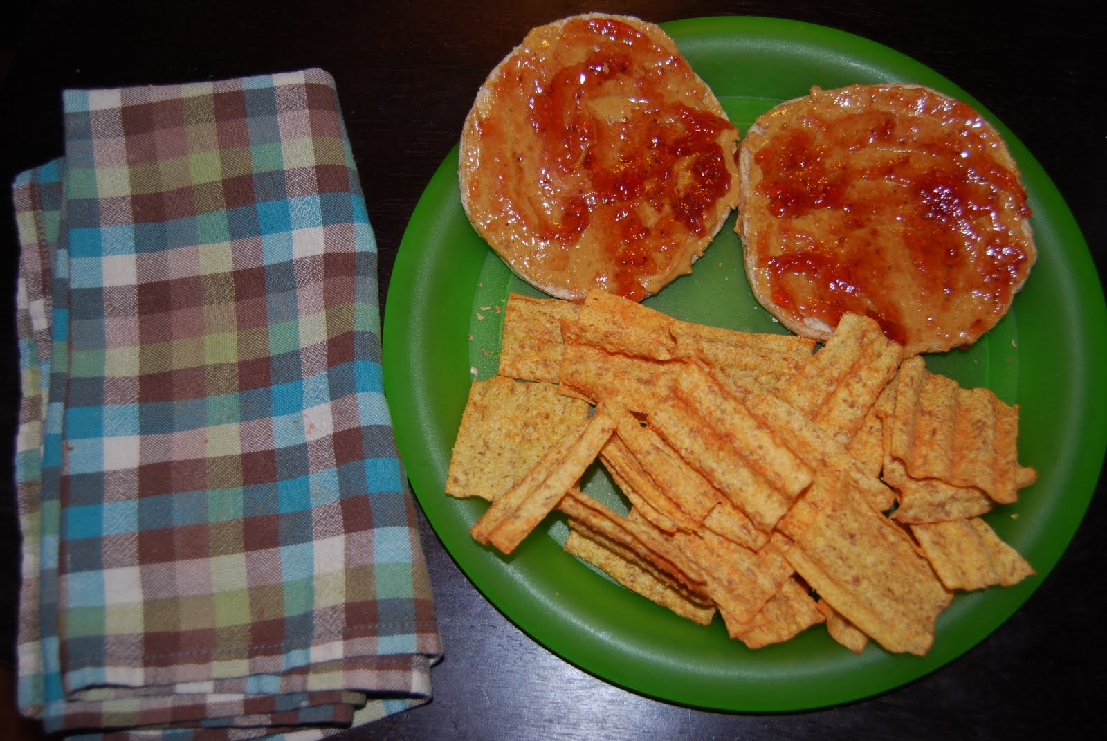 This is my favorite meal…natural peanut butter with polaner’s all fruit on arnold sandwich thins. I love to have these with garden salsa sun chips or orange slices or a pear.